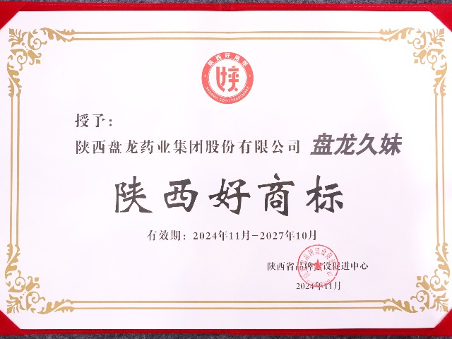喜報(bào)!“盤龍久妹”商標(biāo)榮獲2024年“陜西好商標(biāo)”